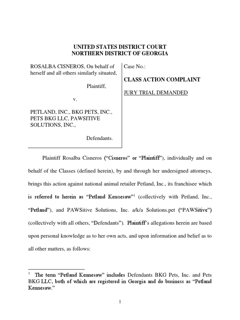 Petland Court Docs1pdf Pdf Class Action Veterinary Physician