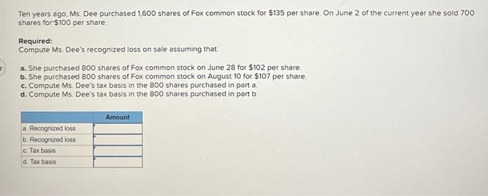 Ten Years Ago Ms Dee Purchased 1 600 Shares Of Fox Chegg Com